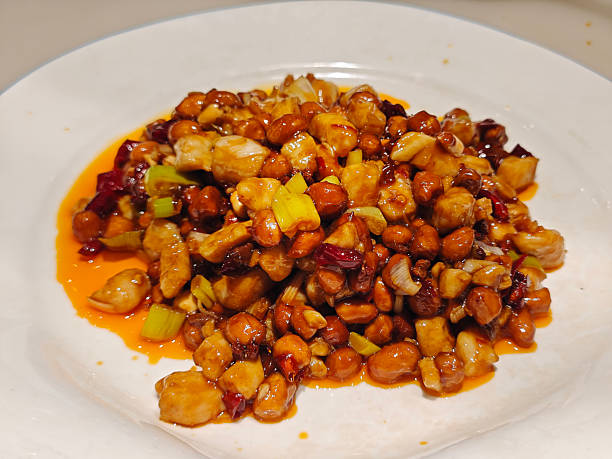 Spicy stir-fried chicken with peanuts and dried chilies.